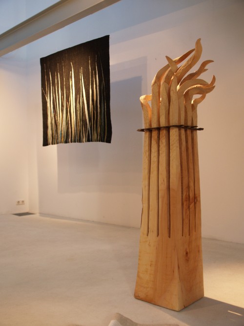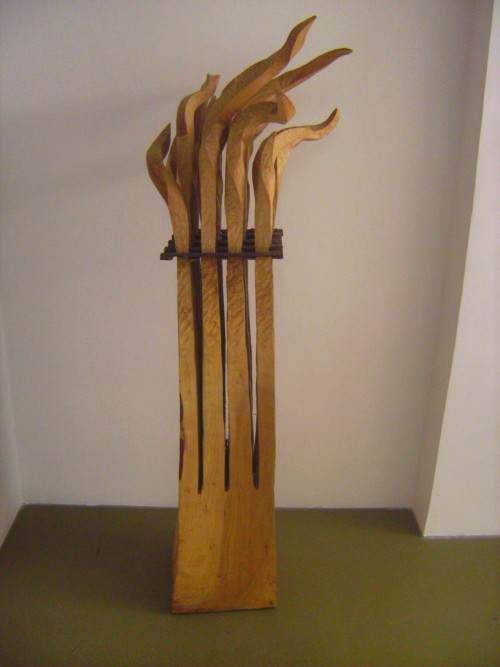 Skulptur in Linde, Weide, Eisen, 140 x 50 x 50 cm