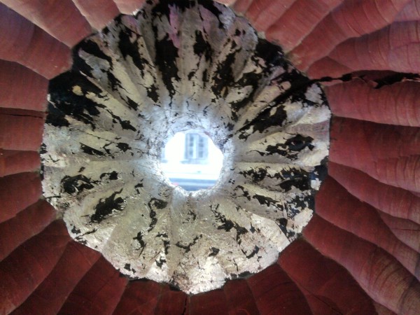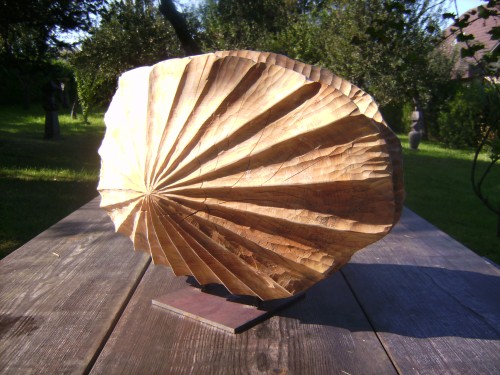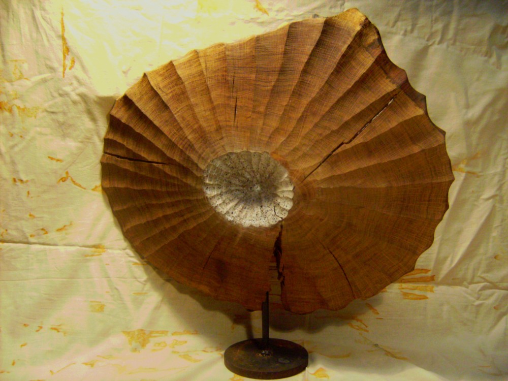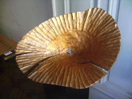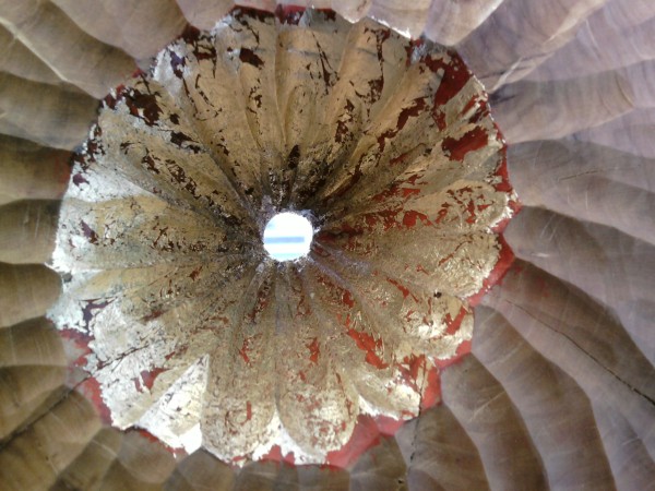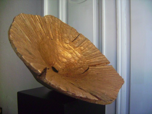 Skulptur in Eiche, Durchmesser ca. 40cm, mit Kanneluren verziert und innen mit Schlagmetall veredelt